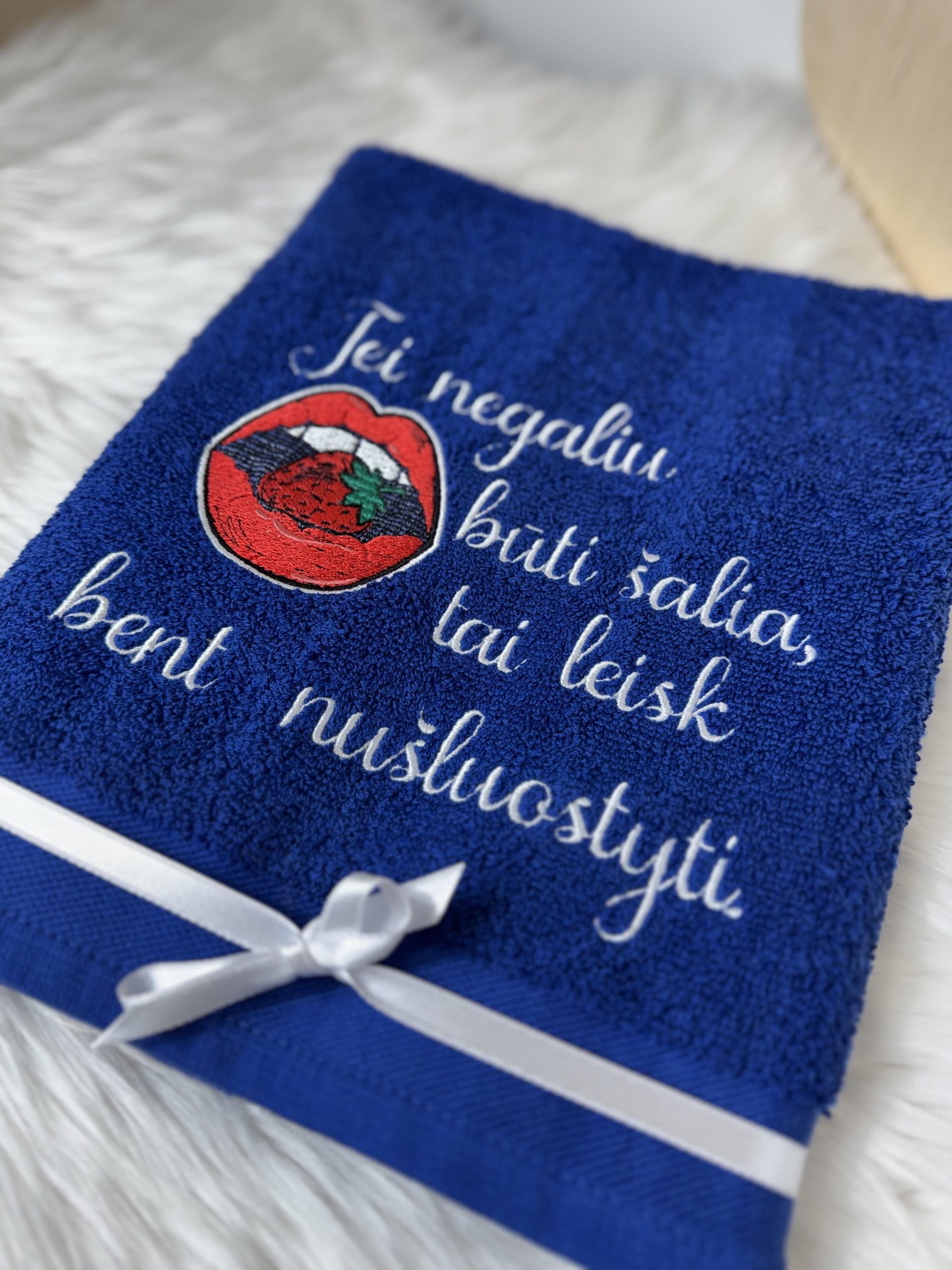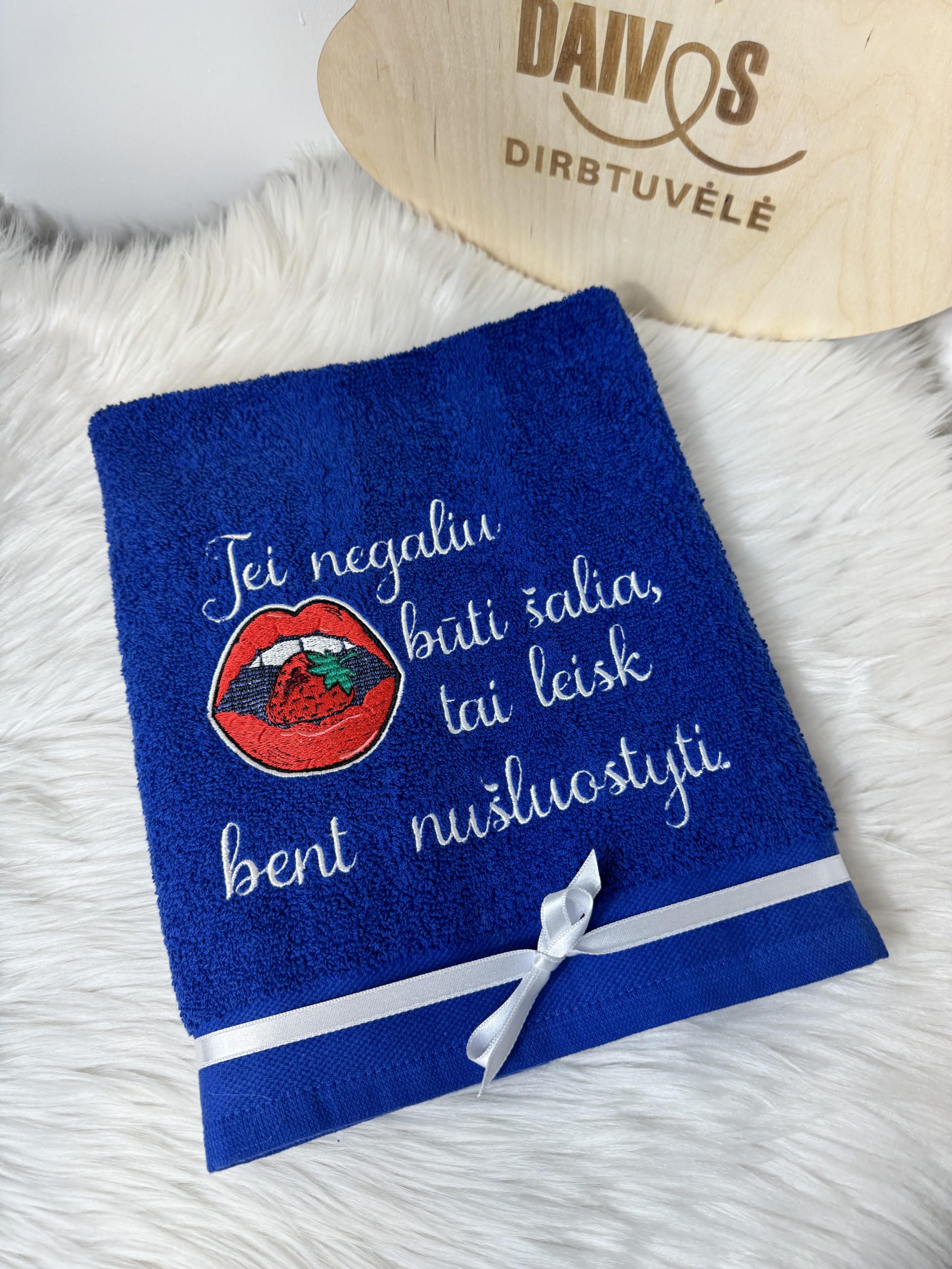 Siuvinėtas rankšluostis „Jei negaliu būti šalia…”